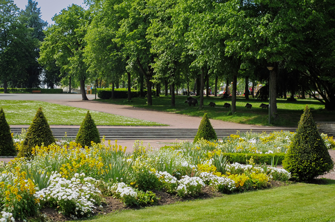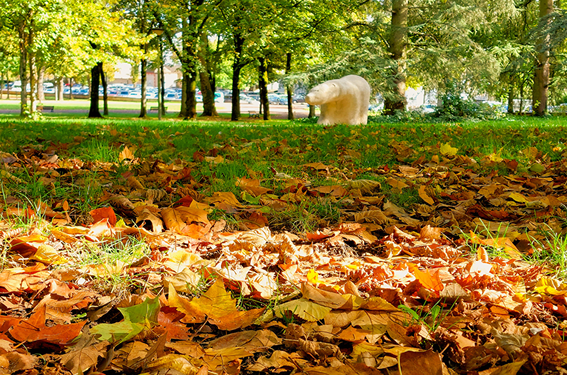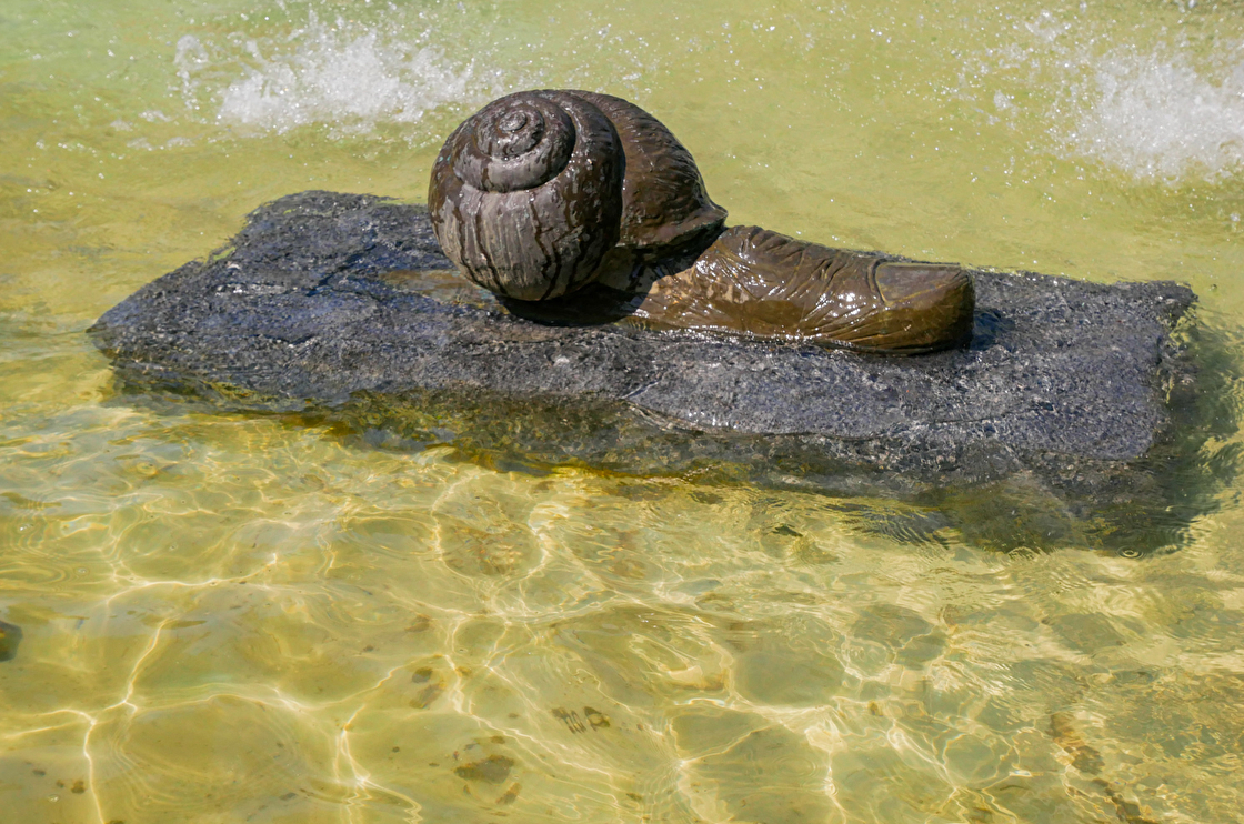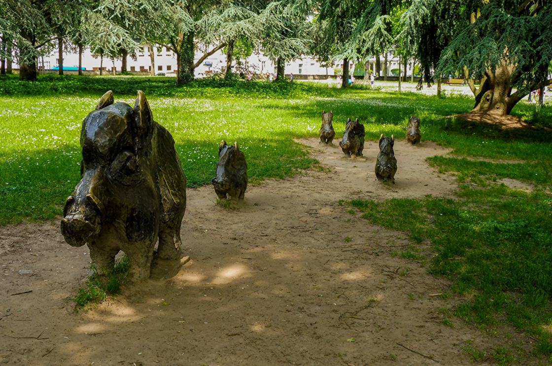 De drôles d'animaux sont cachés dans les allées du parc, les promeneurs croiseront l'ours en marbre blanc, mais aussi toute une famille de sangliers, et en se penchant au dessus de la fontaine...un drôle d'escargot semble flotter !